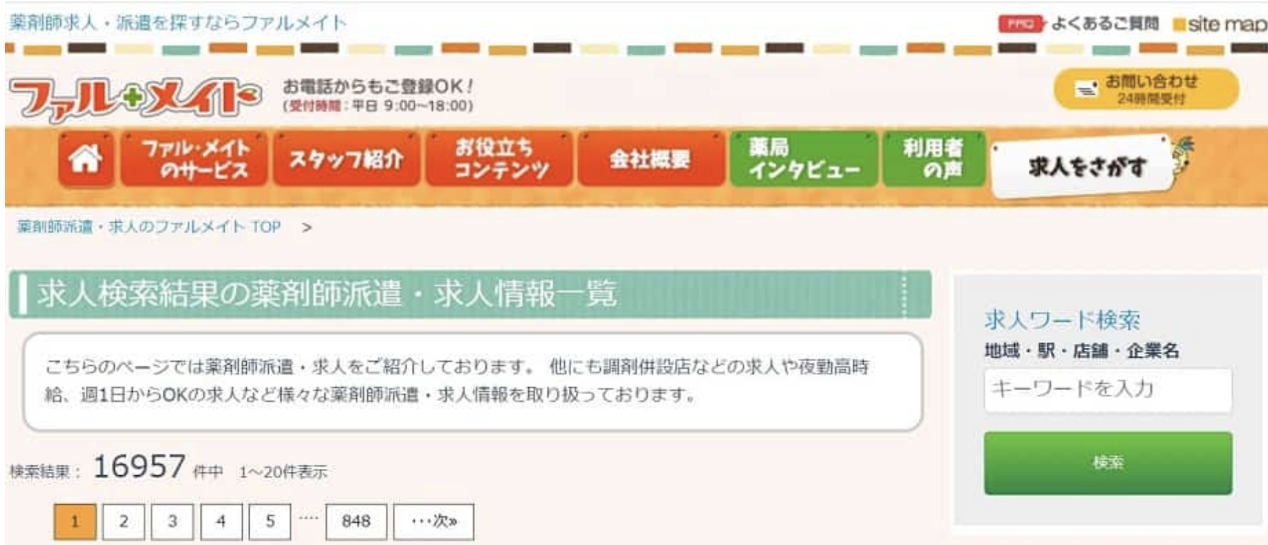 薬剤師登録者数ではNo.1という実績もあり、全ての薬剤師の方におすすめできる転職サイトと言えるでしょう。